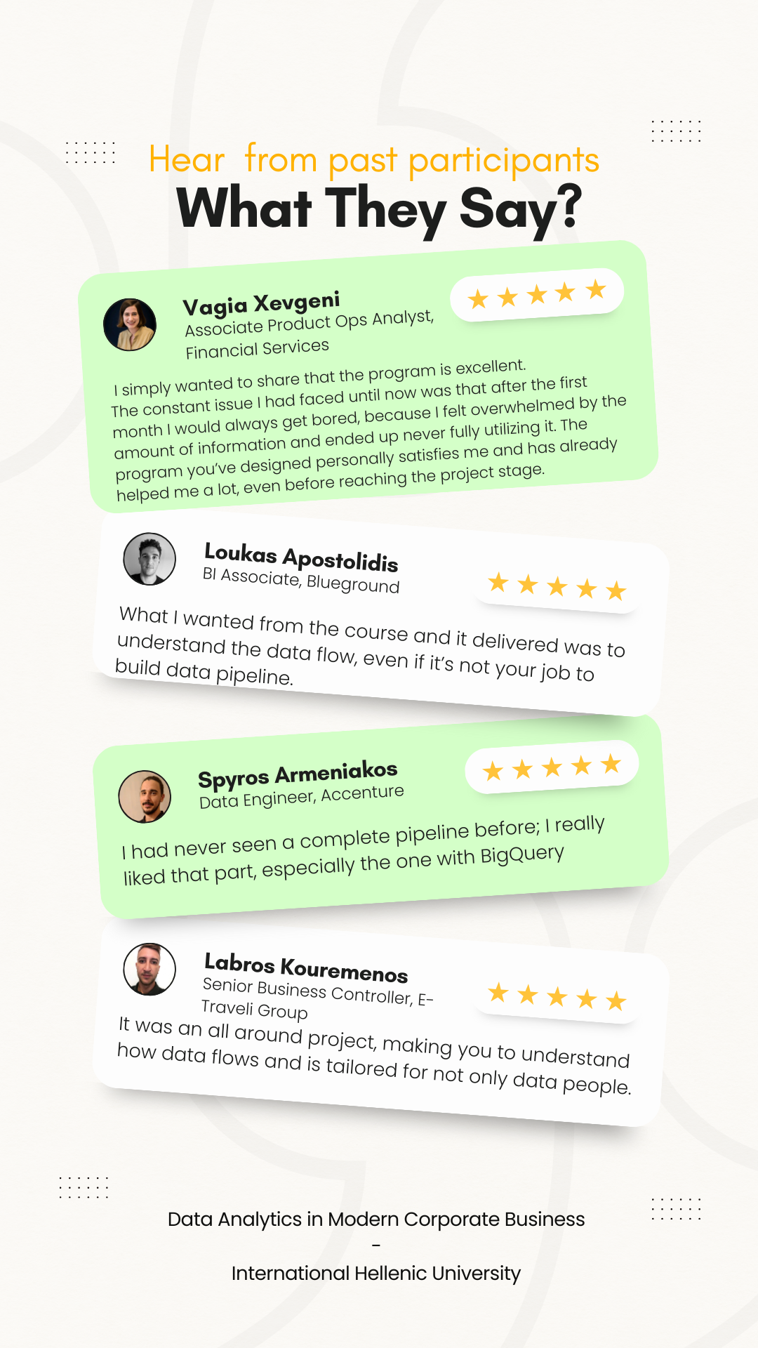 - Ambitious data analysts eager to enhance their analytical abilities and apply them in a corporate environment.